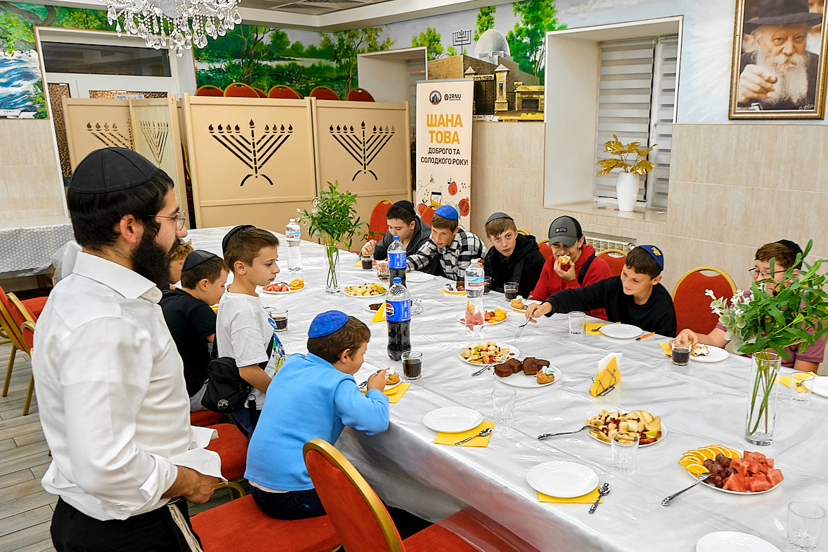 Разом із Мендлом Левітанським хлопчики приватного ліцею “Бейт Менахем Любавич” співали нігуни, грали у веселі ігри, слухали цікаві майси та пригощалися кошерними смаколиками.