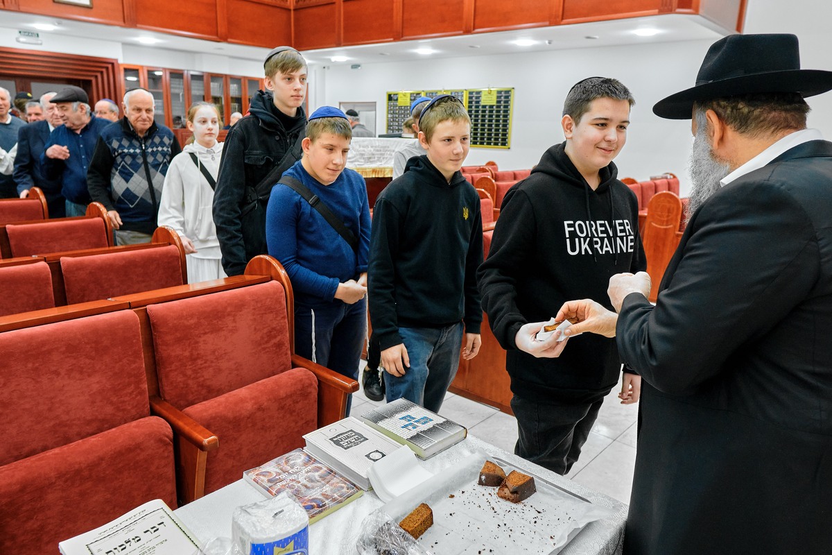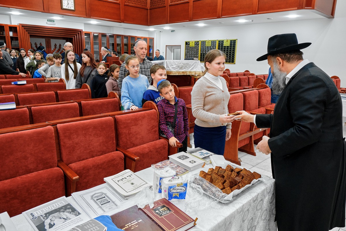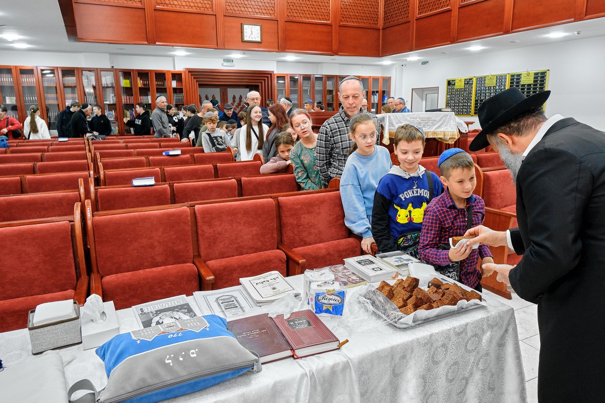 Дошкільнята, учні приватного ліцею “Бейт Менахем Любавич”, чоловіки та жінки програми “Золотий вік”, учасники та учасниці Міжнародного освітнього проєкту “Колель Тора”, працівники центру скористалися можливістю попросити леках у Головного рабина Кам’янського Леві Іцхака Стамблера.