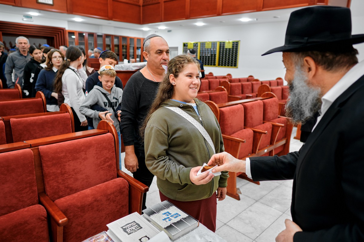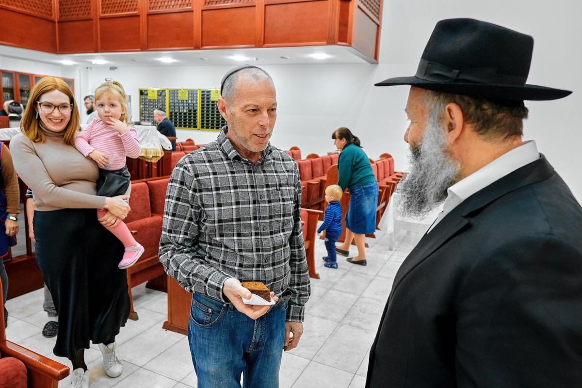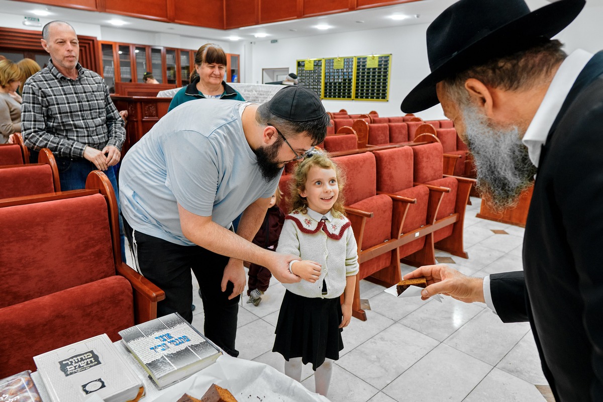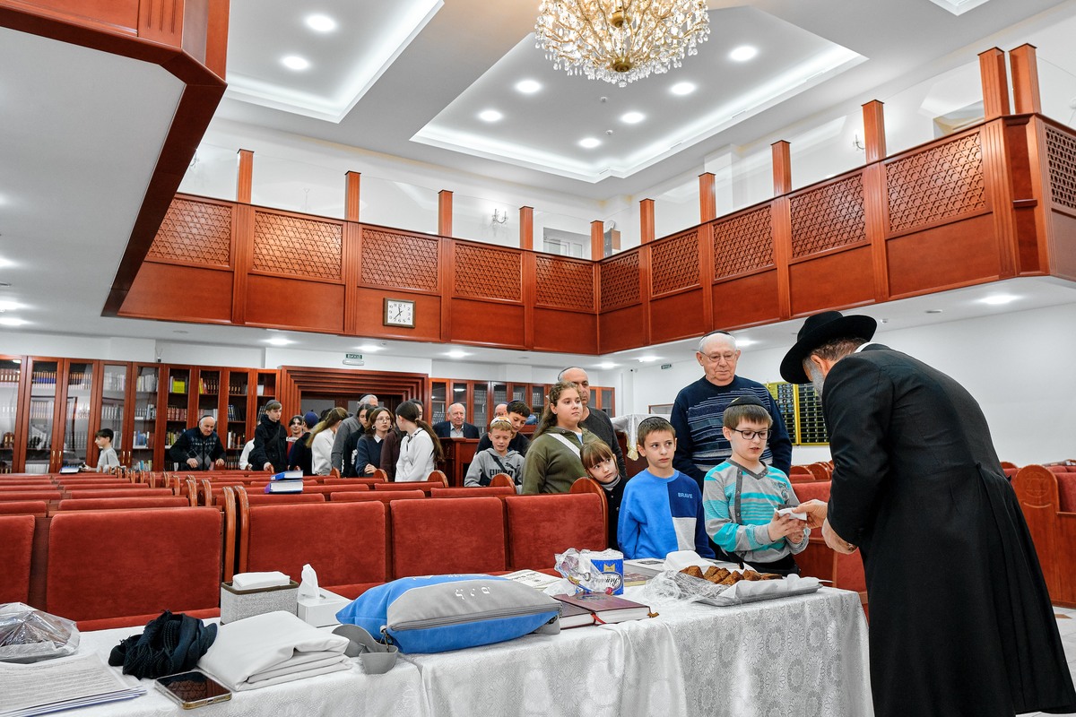 Дошкільнята, учні приватного ліцею “Бейт Менахем Любавич”, чоловіки та жінки програми “Золотий вік”, учасники та учасниці Міжнародного освітнього проєкту “Колель Тора”, працівники центру скористалися можливістю попросити леках у Головного рабина Кам’янського Леві Іцхака Стамблера.