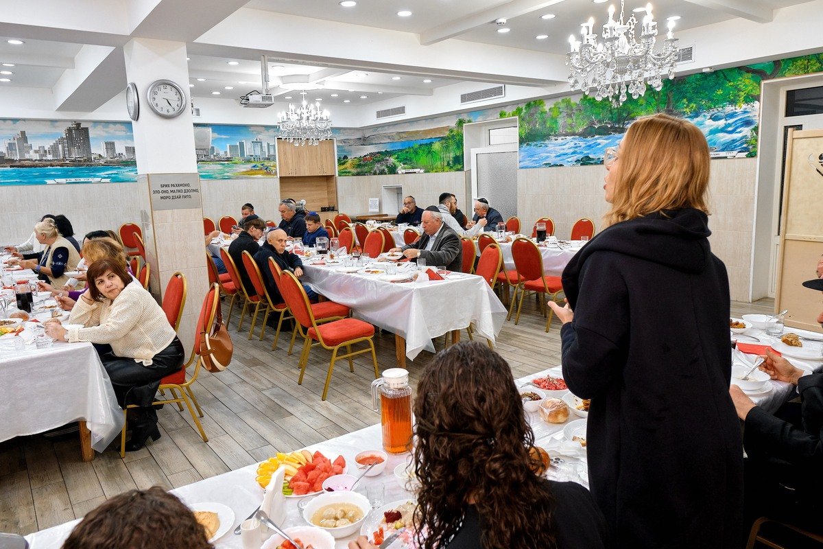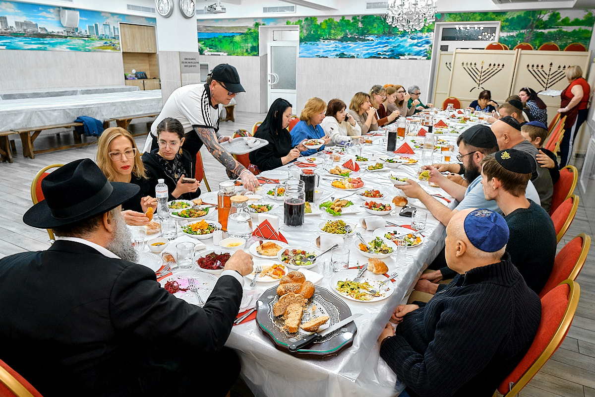 За святковими столами зібралися члени громади міста на чолі з Головним рабином Кам’янського р. Леві Іцхаком Стамблером та його дружиною р-цн Діною Стамблер.