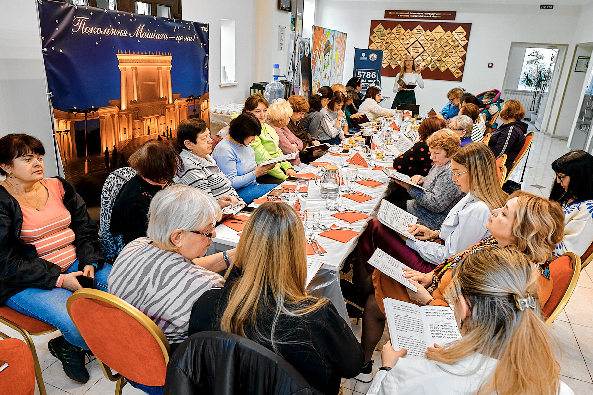 Вечір о 16:00 розпочався духовним уроком за книгою “Тора”, який для жінок Міжнародного освітнього проєкту “Колель Тора” провела ребецн Діна, молитву “Мінха” з чоловіками прочитав реб Леві Стамблер.