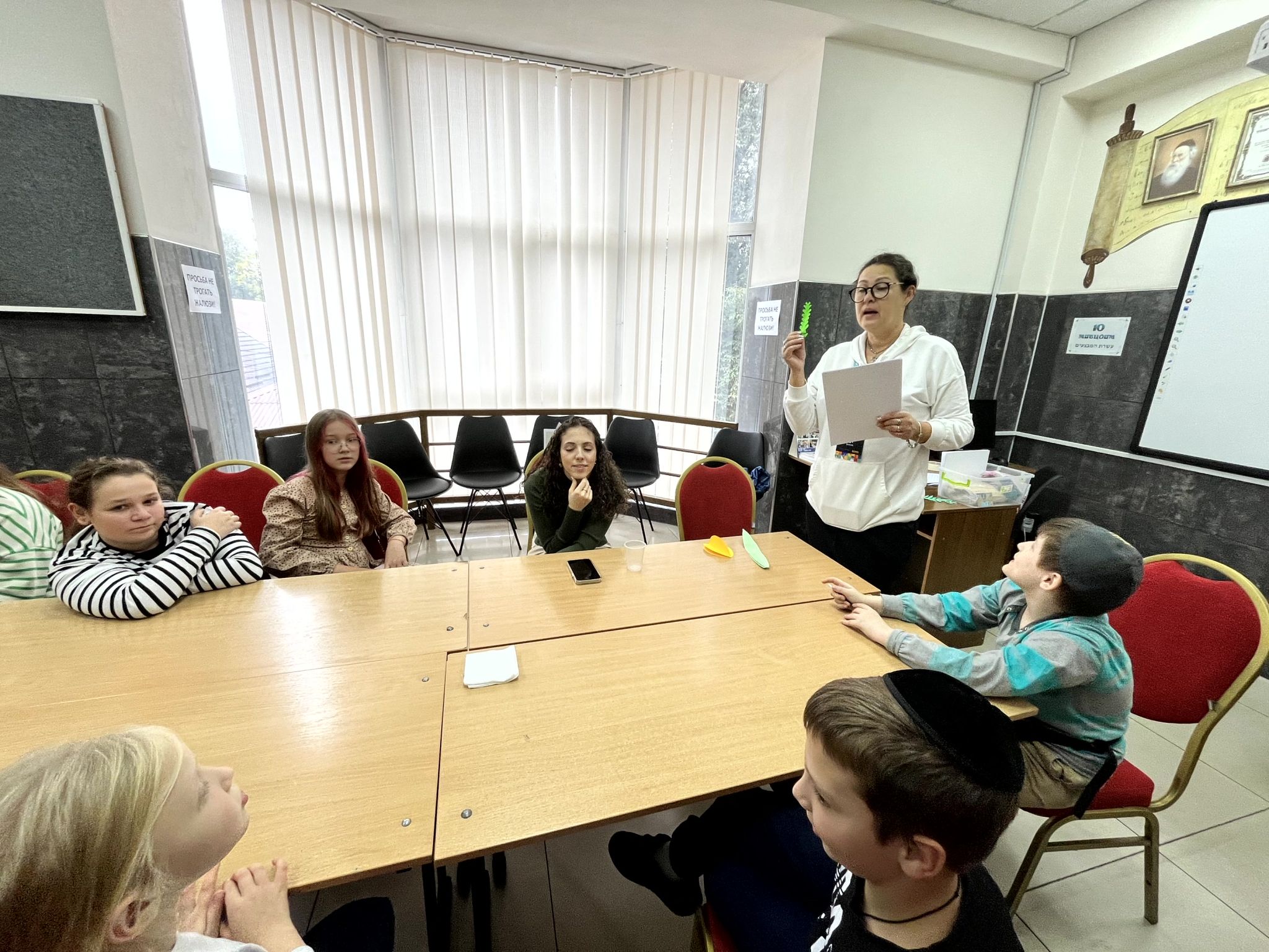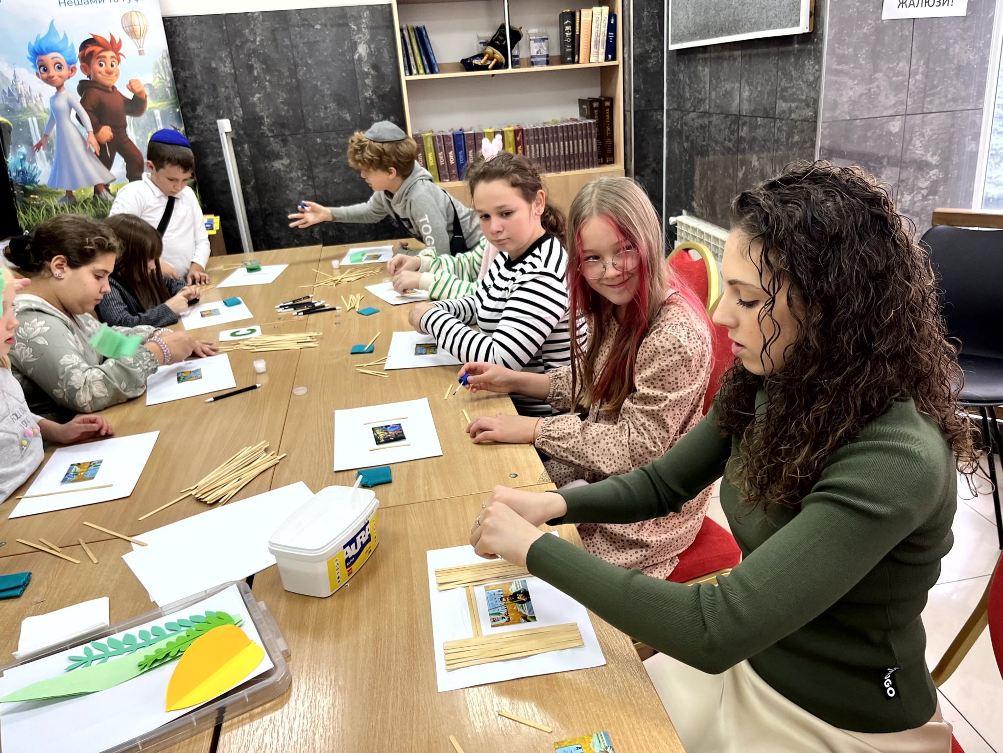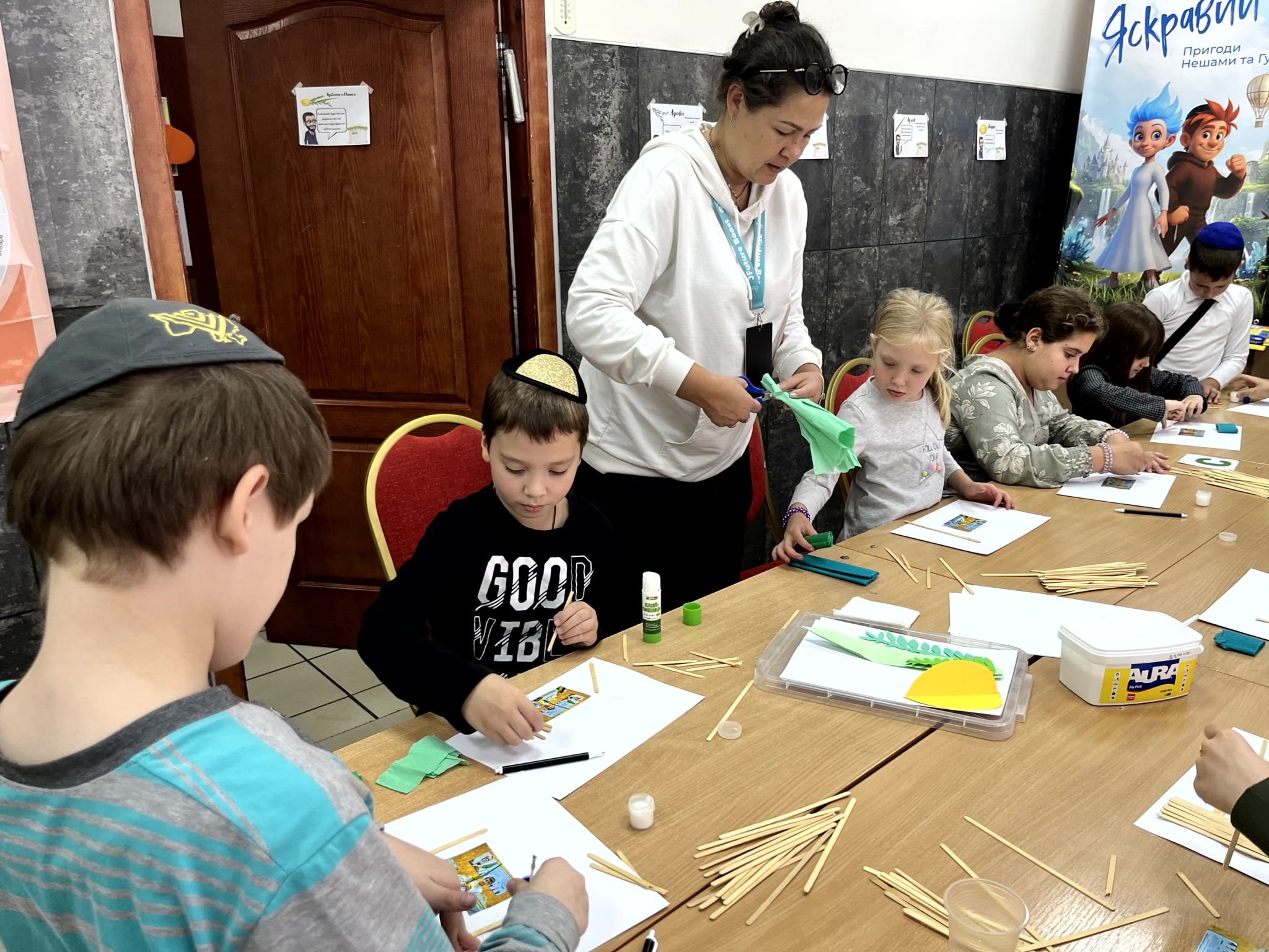 Діти власноруч виготовляли аплікації, вгадували, яка сукка кошерна, а яка ні, дарували подарунки своїм випадково обраним друзям і вітали їх із святом.