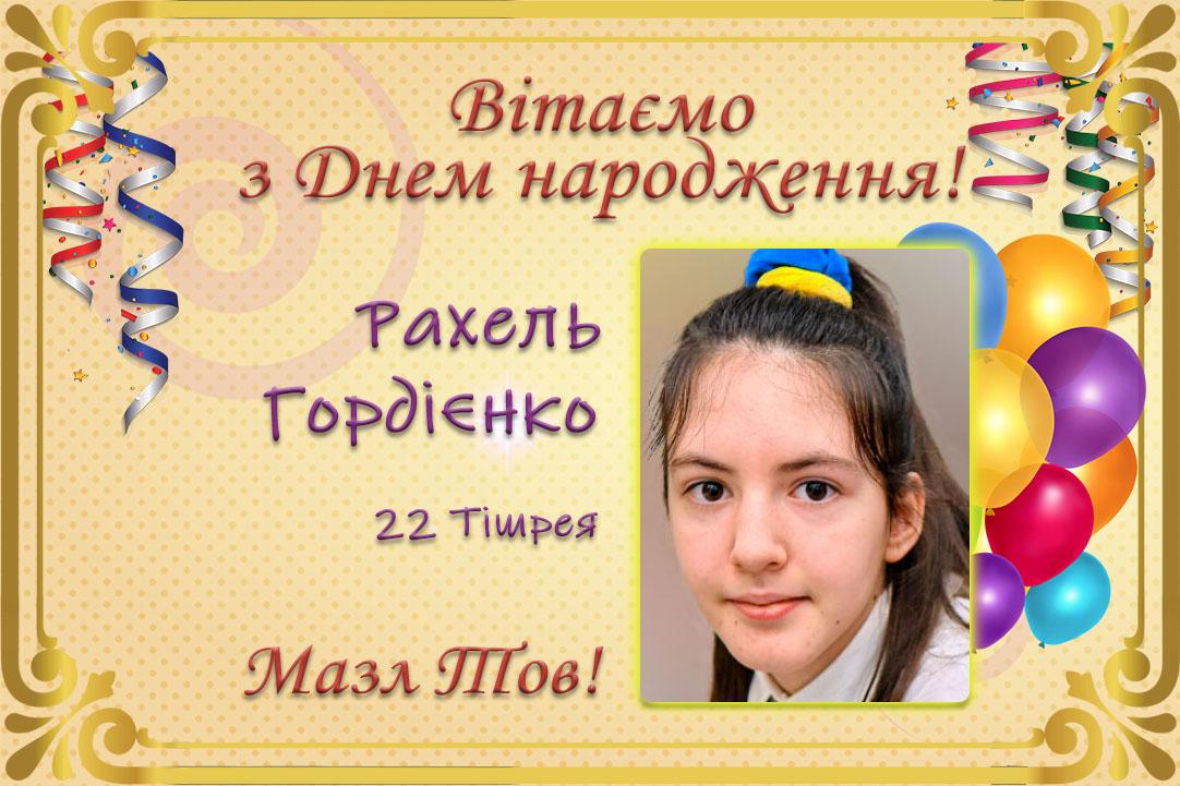 Єврейська громада вітає Рахель Гордієнко із Днем народження! Бажаємо міцного здоров’я, успіхів у всіх починаннях та процвітання.
