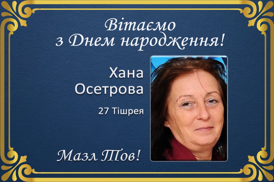 Єврейська громада вітає Хану Осетрову із Днем народження! Бажаємо міцного здоров’я, успіхів, і нехай будуть завжди щастя і радість у її оселі.