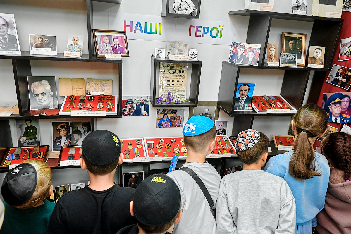 Тематична експозиція “Наші герої” та інформаційна вітрина з документами та світлинами познайомили дітей з великим подвигом та страшною трагедією єврейського населення міста в період окупації.