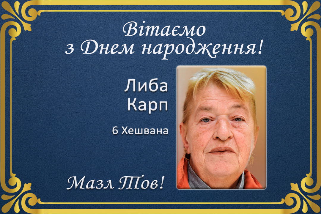 Єврейська громада вітає Лібу Карп з поважним ювілеєм! Це значуща віха, яка заслуговує на особливе святкування. Це час, коли можна з гордістю озирнутися на пройдений шлях та планувати майбутнє. Бажаємо міцного здоров’я, успіхів, і нехай будуть завжди щастя і радість у її оселі.