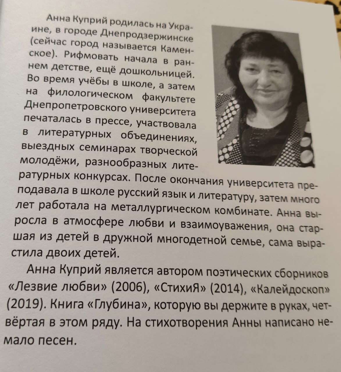 Нарешті вийшла у світ четверта збірка поезій Хани Яель (Ганни) Купрій «Глибина».