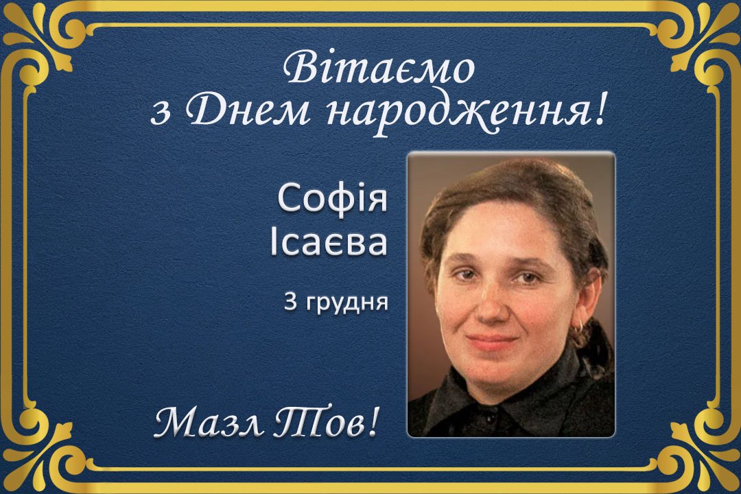 Єврейська громада вітає Софію Ісаєву із Днем народження! Бажаємо міцного здоров’я, успіхів, і нехай будуть завжди щастя і радість у її оселі.