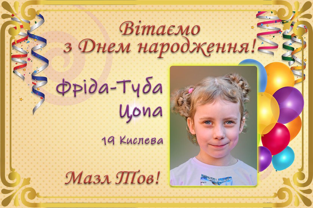 Єврейська громада вітає Фріду-Тубу Цопу із Днем народження! Бажаємо дівчинці вирости здоровою, щасливою, принести багато радості своїм батькам, прийти до Тори, Хупи і добрих справ!