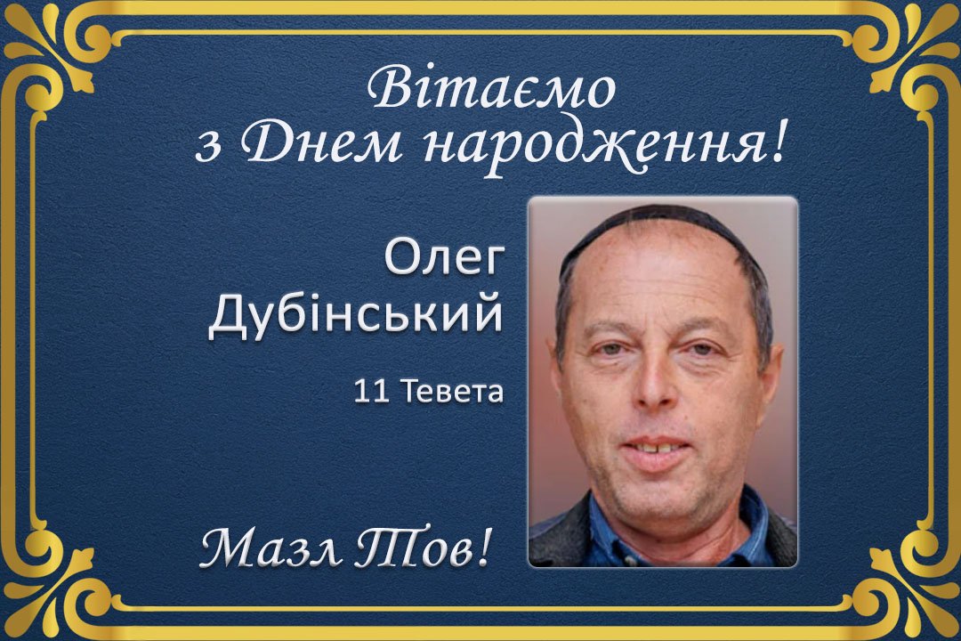 Єврейська громада вітає Олега Дубінського із Днем народження! Бажаємо міцного здоров’я, успіхів, і нехай будуть завжди щастя і радість у його оселі.