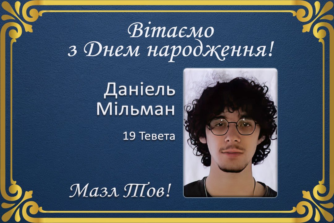 Єврейська громада вітає Даніеля Мільмана із Днем народження! Бажаємо міцного здоров’я, успіхів, і нехай будуть завжди щастя і радість у його оселі.