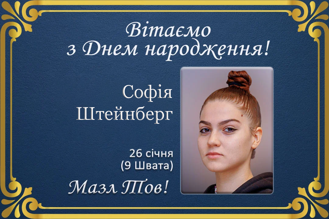 Єврейська громада вітає Софію Штейнберг із Днем народження! Бажаємо міцного здоров’я, успіхів, і нехай будуть завжди щастя і радість у її оселі.