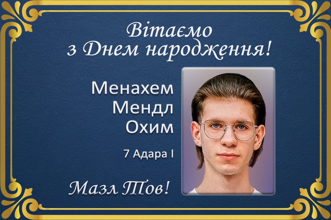 Єврейська громада вітає Менахема-Мендла Охим із Днем народження! Бажаємо міцного здоров’я, успіхів у всіх починаннях та процвітання.