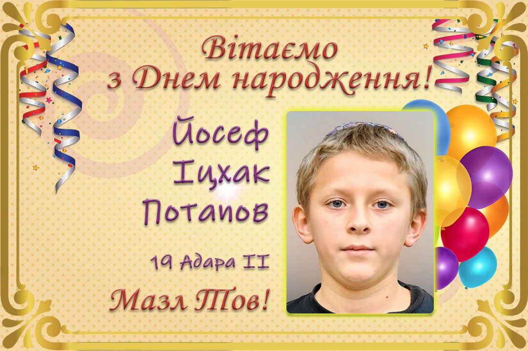 Єврейська громада вітає Йосефа Іцхака Потапова із Днем народження! Бажаємо міцного здоров’я, успіхів у всіх починаннях та процвітання.