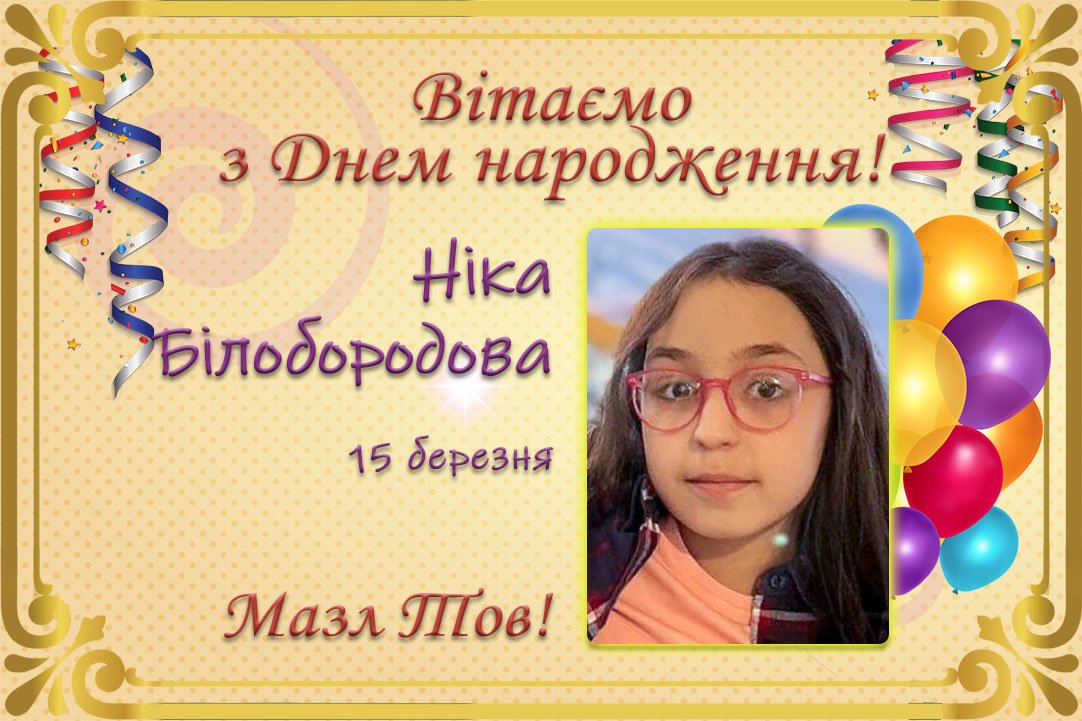Єврейська громада вітає Ніку Білобородову із Днем народження! Бажаємо міцного здоров’я, успіхів у всіх починаннях та процвітання.