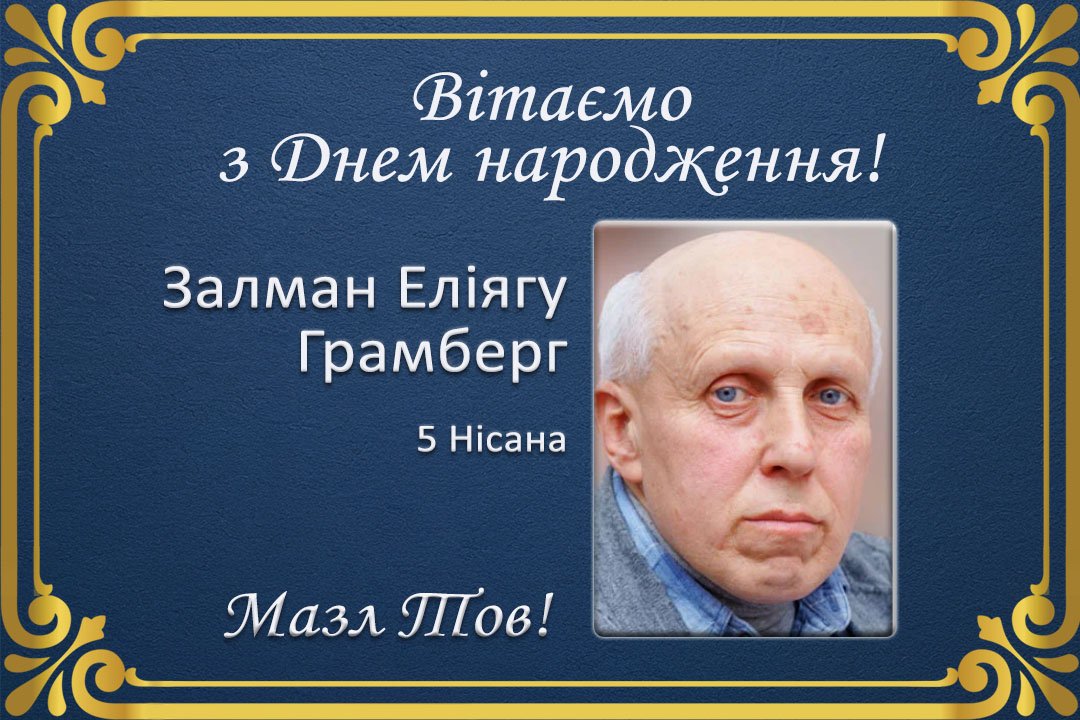 Єврейська громада вітає Залмана Еліягу Грамберга із Днем народження! Бажаємо міцного здоров’я, успіхів, і нехай будуть завжди щастя і радість у його оселі.