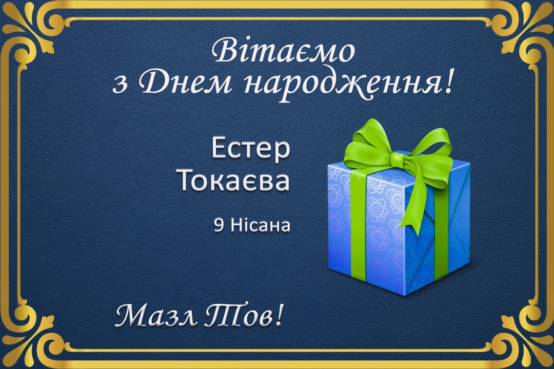Єврейська громада вітає Естер Токаєву із Днем народження! Бажаємо міцного здоров’я, успіхів, і нехай будуть завжди щастя і радість у її оселі.